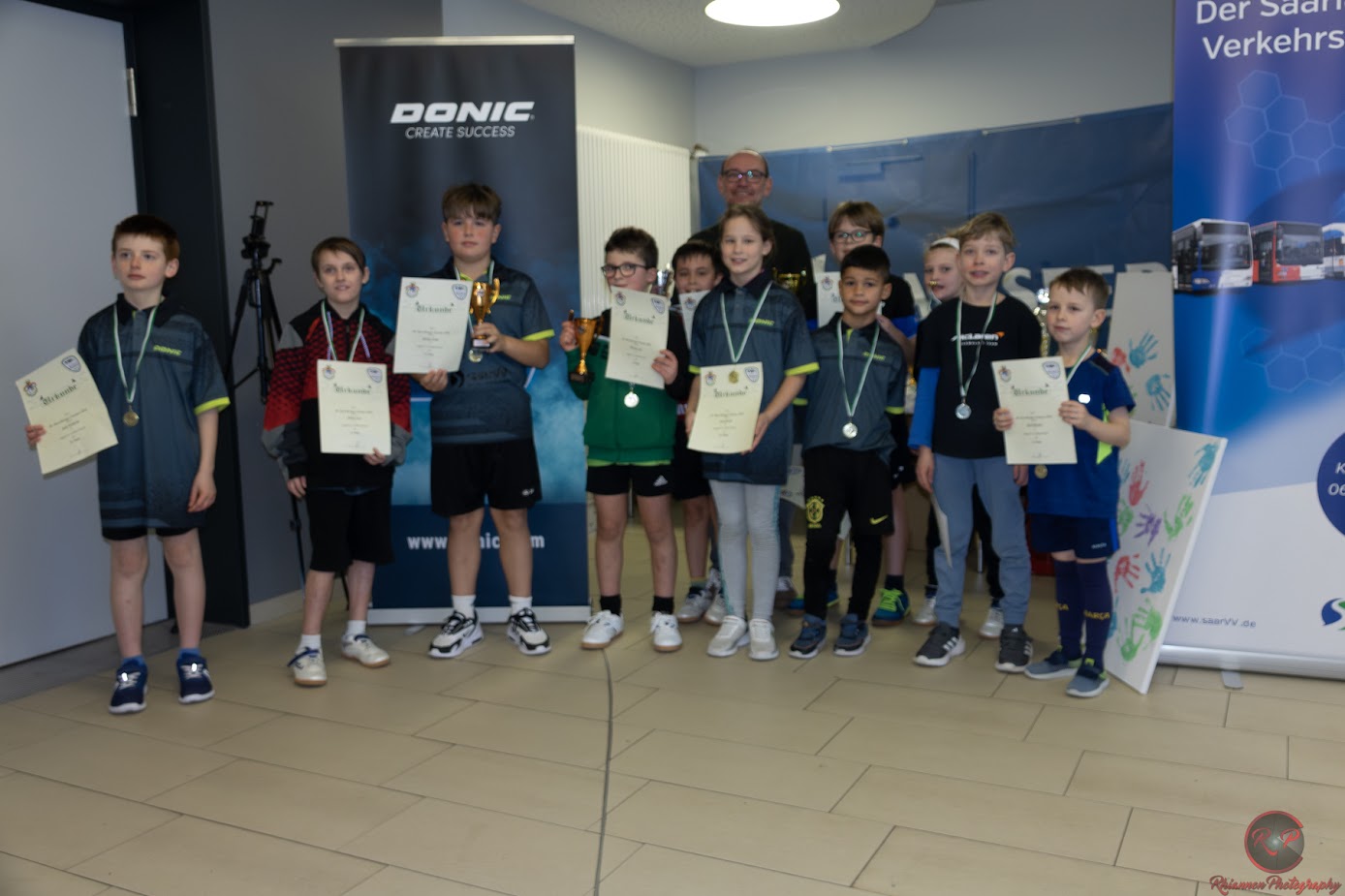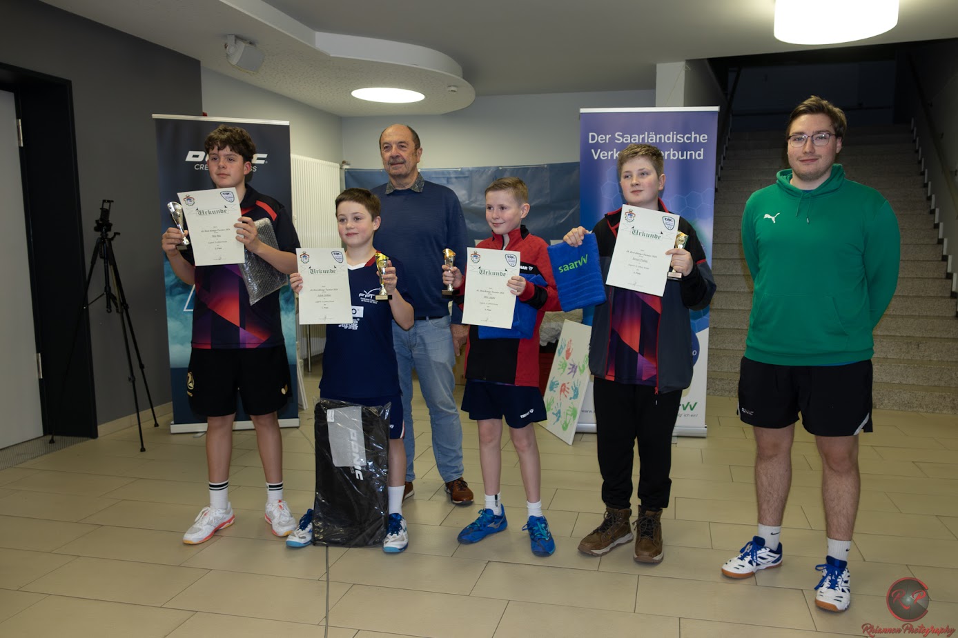 Luis Backes bestätigt SaarlandmeistertitelWie auch bei den Saarlandmeisterschaften war auch hier Luis zu stark für die Konkurrenz.Nach der Gruppenphase ging es in die KO-Runde, wo die Favoriten sich aber zu behaupten wussten. Den schon bei der U9-Saarlandmeisterschaften stark spielenden Niklas Fouache hatte er sicher im Griff und im Halbfinale konnte er mit einem neuen Herausforderer, Moritz Herz aus Könen letztlich auch gut umgehen. Diesem gelang aber das Kunststück ihm den einzigen Satz in der gesamten Konkurrenz abnehmen zu können. Kilians schwere Auslosung, musste er zuerst in der Gruppe gegen Luis und dann in der KO-Runde gegen Aurelio ran, lies nicht mehr zu, aber dennoch verkaufte er sich teuer und spielte wirklich gute Bälle. Moritz kam ins Halbfinale und wusste dort Aurelio voll zu fordern und musste sich erst im Entscheidungssatz geschlagen geben. Aurelio und Luis kennen sich aus vielen gemeinsamen Trainingsstunden. Beide wissen sich zu schätzen. Doch derzeit hat hier Luis unter den Hochbegabten klar die Nase vorn. Platzierungen1. Luis Backes (1. FC Saarbrücken)2. Aurelio Phong Brendel (1. FC Saarbrücken) 3. Moritz Herz (FC Könen) 3. Moritz Fries (DJK Roden) Ergebnisseite des Jugend Einzel U11 beim 48.Drei-Königs-Turnier (Gruppenphase) Ergebnisseite des Jugend Einzel U11 beim 48.Drei-Königs-Turnier (KO-Phase) Finale des Jugend Einzel U11 im Youtube-Channel der DJK Roden Abt.TT 48. DKT Nachlese Jugend 13