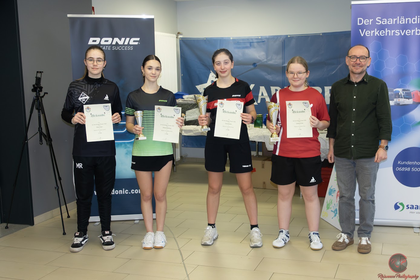 Cheyenne sicherte sich den TitelMarie landete auf dem vierten Platz, da fehlt nur etwas mehr Spielpraxis, um noch einmal deutlich besser zu werden. Mariia kam stark verbessert seit dem letzten Jahr auf dem dritten Platz ein und vorne wurde es sehr eng zwischen Erine und Cheyenne, die letztlich im fünften Satz die Oberhand behielt. Herzlichen Glückwunsch und viel Erfolg auf eurem weiteren Weg !Platzierungen1. Cheyenne Ney (DJK Roden)2. Erine Bayard (Frankreich) 3. Mariia Matsnieva (TTF Merzig) Ergebnisseite des Mädchen Einzel beim 48.Drei-Königs-Turnier 48. DKT Nachlese Senioren Ü40 A