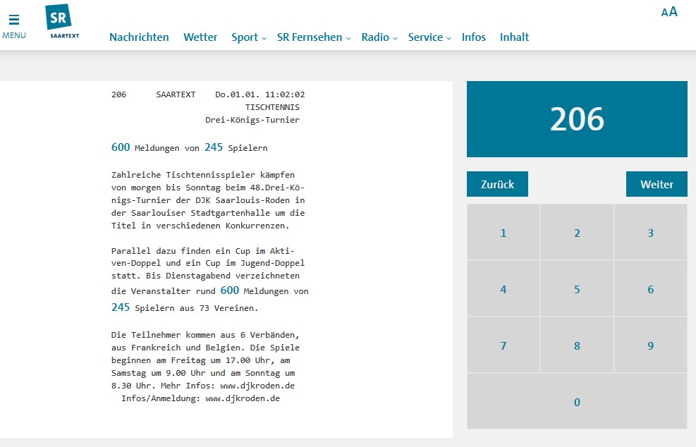 Presseberichte zum 48.Drei-Königs-TurnierDie Saarbrücker Zeitung schreibt in der Lokalausgabe vom 09. Januar 2025Tischtennis-Traditionsturnier Heftiger Schlagabtausch bis tief in die NachtSaarlouis · Es ist seit 1978 fester Bestandteil des saarländischen Tischtennis-Kalenders: Das Drei-Königs-Turnier der DJK Roden lockte wieder Hunderte Spieler in die Stadtgartenhalle. Ein Vater und seine Tochter durften besonders jubeln.Hochbetrieb: Drei Tage lang war beim Drei-Königs-Turnier in der Stadtgartenhalle an 16 Tischtennis-Platten richtig was los.Von David Benedyczuk332 Spieler aus 94 Vereinen und insgesamt 844 Meldungen für die verschiedenen Konkurrenzen im Einzel und Doppel: In der Saarlouiser Stadtgartenhalle waren die 16 vereinseigenen Tischtennis-Platten am Wochenende beim 48. Drei-Königs-Turnier der DJK Saarlouis-Roden an allen drei Tagen nahezu durchgängig besetzt. Ob jung oder alt, ob groß oder klein: Die vielen Teilnehmer sorgten am ersten Wochenende des neuen Jahres für eine Vielzahl spannender Spiele – und eine besondere Akustik in der großen Halle. Das Dauerklacken der Tischtennis-Bälle kennt der DJK-Vorsitzende und Turnier-Organisator Carsten Sonntag seit Jahren bestens. „Die Resonanz war auch in diesem Jahr wieder sehr gut und zog sich quer durch alle Klassen, die wir nahezu alle besetzen konnten“, sagte er – und blickte bereits erfreut auf die nächste Auflage der erstmals 1978 ausgespielten Veranstaltung. Aufgrund der vielen Spieler und Partien zog sich auch der Schlusstag gehörig in die Länge. Fast bis 2 Uhr in der Nacht schlugen sich die Konkurrenten im Herren-Einzel und -Doppel am Sonntag die Bälle um die Ohren. Die beiden verbliebenen von 57 Paarungen im Kampf um die Doppel-Krone beim 5. Karlsberg-Kapp waren als Allerletzte im Einsatz – und Jan-Philip Becker und Til Sander vom TTC Berus hatten schließlich auch den längsten Atem: Sie bezwangen Firat Karadeniz und Michael Schwarz vom TTC Oberwürzbach in vier hart umkämpften Sätzen mit 11:8, 11:6, 9:11 sowie 11:9 und holten damit den Sieg in der letzten von 26 Entscheidungen seit dem Startschuss am Freitagnachmittag. Zuvor hatte am späten Sonntagabend Michael Schwarz, der seit dieser Saison für Drittliga-Aufsteiger TV Limbach spielt und zu überzeugen weiß, das Endspiel der höchsten Erwachsenen-Kategorie für sich entschieden – durchaus überraschend, denn der 26-Jährige bezwang mit Mike Holle vom Zweitligisten 1. FC Köln den eigentlichen Favoriten glatt in drei Sätzen. Schwarz, der zwischenzeitlich acht Jahre lang für den DT Berburg in Luxemburgs in der 1. Liga an die Platte ging und sich dort 2024 mit der Vizemeisterschaft verabschiedet hatte, sicherte sich den ersten Durchgang mit 11:7. Im Anschluss bewies das Oberwürzbacher Eigengewächs, das dort vergangene Saison in der Landesliga angesichts einer 32:0-Bilanz wenig Herausforderungen fand, zwei Mal Nervenstärke in der Verlängerung. Er schnappte dem 21-jährigen Holle den zweiten Satz nach dramatischem Verlauf mit 15:13 vor der Nase weg. Im dritten Durchgang machte Schwarz mit dem 13:11 seinen zweiten Triumph beim Drei-Königs-Turnier nach 2023 perfekt. Rekordsieger bei den Herren bleibt Stanislav Horshkov, der das Turnier bereits acht Mal gewinnen konnte. Im Vorjahr hatte sich Sascha Treinen vom TV Altenkessel in die Siegerliste eingetragen. Dort tauchten diesmal auch zwei Akteure der Gastgeber auf: Bei den Erwachsenen D sicherte sich David Ney, der meist für die vierte Mannschaft der DJK Saarlouis-Roden aufschlägt, mit einem glatten Dreisatzsieg über Richard Ruffing vom TTC Berus den Turniererfolg. Zuvor hatte er sich im Halbfinale ein enges Duell mit Fabio Aronica geliefert, das der 37-Jährige gegen seinen knapp zehn Jahre jüngeren Mannschaftskollegen mit 5:11, 12:10, 10:12, 11:8 und 12:10 gewann. Neys Tochter Cheyenne, die auch für den TTSV Fraulautern aufschlägt, durfte sich über den Sieg bei den U 19-Mädchen freuen. Sie bezwang die Französin Erine Bayard (Siegerin der U 15-Mädchen) knapp in fünf Sätzen mit 12:10, 6:11, 6:11, 11:6, 11:6. Nach der erfolgreichen Auflage 2026 ist der Termin für das nächste Drei-Königs-Turnier bereits fix: die 49. Austragung erfolgt vom 8. bis 10. Januar 2027. Wochenspiegel-Online schreibt in der Ausgabe von Dezember 2025 48. Drei-Königs-Turnier25. Dezember 2025 Landkreis SaarlouisSaarlouis. Same procedure as last year – same procedure as every year (Der gleiche Ablauf wie im letzten Jahr – der gleiche Ablauf wie jedes Jahr) wird „Miss Sophie“ beim Dinner for one zugeschrieben, einem sehr beliebten Silvester-Fernsehstück von Laurie Wylie aus Anfang der Sechziger. Zugegeben, da war die DJK Roden mit dem Drei-Königs-Turnier noch nicht am Start, erst 1978 startete das erste Tischtennis-Turnier in der Rodener Kulturhalle, doch wiederkehrende Abläufe sind in den letzten 47 Jahren durchaus erkennbar. „Bei allem Blick auf die Tradition und routinierte Abläufe dürfen wir nie den Blick auf Neues verlieren oder glauben, alles liefe irgendwie von selbst“, erklärt der Vorsitzende der Tischtennisabteilung der DJK Roden, Carsten Sonntag und ergänzt: „Wir haben das Drei-Königs-Turnier durch schweres Fahrwasser gesteuert, sei es die Corona-Zeit oder die Einführung der Turnierlizenz, aber wir sind fest entschlossen, diese Tradition bis zur 50. Auflage und weit darüber hinaus zu tragen.“ Bis Anfang Weihnachten sind bereits 130 Spielerinnen und Spieler mit 315 Meldungen ( 50% Jugendliche / 50% Erwachsene) aus 4 Verbänden plus Frankreich und insgesamt bis dato 58 Vereine eingeschrieben, eine Zahl, die sich mindestens verdoppelt, in manchen Jahren gar verdreifacht hat bis zu Turnierbeginn In 27 unterschiedlichen Konkurrenzen quer durch alle Alters- und Leistungsklassen treffen sich vom 02. bis 04. Januar 2026 in der Stadtgartenhalle in Saarlouis Tischtennis-Interessierte aus dem Hobby- und Verbandsspielbetrieb, um Spaß zu haben und Siegerinnen und Sieger zu küren. Noch 