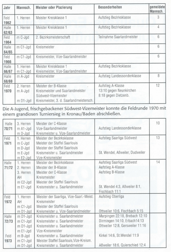 Wie man aus der Tabelle ersehen kann, war das Jahr 1974/75 mit drei Saarlandmeisterschaften,