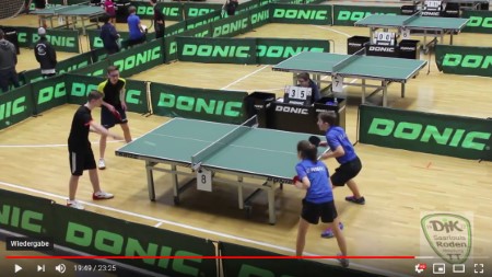Schüler- und Schülerinnen-Doppel A - Mia und Til mit Glück und GeschickMehr als doppelt so viele Meldungen gegenüber der B/C-Konkurrenz, das Doppel Schüler A sollte ein offener Wettbewerb mit ungewissem Ausgang werden. Beim Doppel der Altersklasse U15 waren ganz in der Tradition unseres Drei-Königs-Turniers Schüler-Doppel, Schülerinnen-Doppel und Mixed-Doppel erlaubt und erwünscht. Eine das Turnier belebende und bereichernde Konkurrenz, die gute Werbung für unseren Sport war.In der ersten Runde gab es keine grösseren Überraschungen zu vermelden und auch im weiteren Turnierverlauf sollten es die vier Top-Gesezten Doppel sein, die das Halbfinale erreichten. Und dennoch: jedes Viertelfinale war umkämpft, in dreien konnten die Herausforderer den Favortien gar einen Satz abluchsen und die Spiele offen gestalten. Im Halbfinale waren Jan Selzer/Jolina Morres (Neuenhainer TTV 1955/TTSV Fraulautern), eine Zusammenstellung, die sich erst in letzter Sekunde vor Beginn des Wettbewerbs fand, ganz nah dran. Sie siegten im ersten Satz knapp gegen Mia Federkeil/Til Sander (SV Remmesweiler/TTC Berus), verloren am Ende aber mit zweimal 11:13 im 3. und 4.Satz die Partie unglücklich. Im zweiten Halbfinale waren Marc Arand/Philip Folz (TTC Hülzweiler) nur im 3.Satz nicht aufmerksam und mussten diesen Felix Kohlen/Lukas Reiß (TTC Oberwürzbach) überlassen, die drei gewonnen Sätze waren aber deutlich und klar und die Hülzweilerer Nachwuchshoffnungen standen durchaus verdient im Finale. Dort entwickelte sich ein echter Krimi, bei dem Marc und Philip zweimal in Satz-Führung gehen konnten. Doch Mia und Til haben schon soviel Spielpraxis und bewiesen Nervenstärke genau dann, als es darauf ankam. Ein knappes 5:4 im 5.Satz erhöhten sie schnell auf ein 9:6, beim 9:8 Anschluss schnell noch ein Time Out, der erste Matchball beim 10:9 war dann ein Schmetterschlag von Mia, der noch leicht die Netzkante berührte. Das Glück erarbeitet haben sich Mia Federkeil und Til Sander und sie sind verdiente Sieger der Schüler-A-Doppel-Konkurrenz. Doch Marc Arand und Philip Folz können ebenso stolz auf den 2.Platz sein und sollten dem letzten Netzball nicht zu lange nachtrauern. Platzierungen1. Til Sander/Mia Federkeil (TTC Berus/SV Remmesweiler)2. Marc Arand/Philip Folz (TTC Hülzweiler) 3. Jan Selzer/Jolina Morres (Neuenhainer TTV 1955/TTSV Saarlouis-Fraulautern) 3. Felix Kohlen/Lukas Reiß (TTC Oberwürzbach) 5. Nils Einloft/Hannes Fischer (TTV Niederlinxweiler) 5. Lisa Wang/Elisa Kohlen (TTC Oberwürzbach) 5. Nico Kappel/Johannes Süßmilch (TTC WNL Losheim am See) 5. Tim Tornes/Nils Meiser (TV Geislautern) Die Finals aller Konkurrenzen als Video im DJK Youtube-Channel von Yannick Motz |