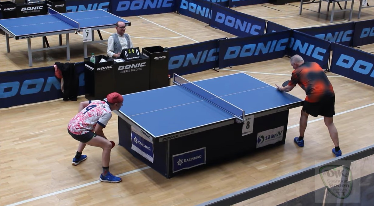 Jürgen Goldinger mit gutem HändchenDie Favoriten waren auch in den acht Gruppen vorne und so durfte man von einer spannenden KO-Runde ausgehen. Doch schon in Runde eins erwischte es den hoch gesetzten Ricardo Müller, der Sascha Schneider unterlag. Als in Runde zwei auch der bis dahin so souverän agierende Mark Berg an Dieter Schumacher scheiterte, war die Konkurrenz ihre zwei Topgesetzten los.Sascha und Jürgen nutzten die Gelegenheit und spielten sich über Dieter bzw. Stephan ins Finale. Dort entwickelte sich ein enges Match. Satzbälle hatten beide im ersten Durchlauf, Jürgen konnte einen davon zum 16:14 nutzen. Der zweite Satz ging klar an ihn, Sascha erkämpfte sich den dritten und schien bei 5:1-Führung im vierten die Wende einleiten zu können, doch Jürgen kam zurück und gewann diese knappe Entscheidung zu guter Letzt doch noch. Platzierungen1. Jürgen Goldinger (DJK Dudweiler)2. Sascha Pierron (TTC Hülzweiler) 3. Stephan Bier (TTC Köllerbach) 3. Dieter Schumacher (DJK Heusweiler) Ergebnisseite des Senioren Einzel Ü40 B beim 48.Drei-Königs-Turnier (Gruppenphase) Ergebnisseite des Senioren Einzel Ü40 B beim 48.Drei-Königs-Turnier (KO-Phase) Finale des Senioren-Einzel Ü40 B im Youtube-Channel der DJK Roden Abt.TT 48. DKT Nachlese Senioren Ü50