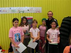 Minimeisterschaften 2007Die Minimeisterschaften dieses Jahres könnten eigentlich als die Mini-Mini-Meisterschaften bezeichnet werden, zeigten doch bereits die Jüngsten mit sieben Jahren, dass sie den nur 40mm großen Ball bereits recht ordentlich treffen können. Doch getreu dem Spruch "Früh übt sich was ein Meister werden will", ist 7 bis 8 Jahre bereits ein sehr geeigneter Zeitpunkt, um mit Tischtennis zu beginnen, ja schon mit Kindergartenkindern waren unsere Trainer schon erfolgreich, wobei dort natürlich auch andere Sportarten und viele Ballspiele im Vordergrund stehen, da eine möglichst umfassende Koordination nicht nur im Tischtennis sondern bis ins hohe Erwachsenenalter viele Vorteile bringt und Tischtennis dafür geradezu prädestiniert ist.