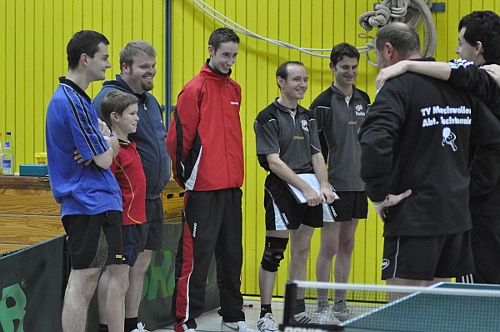 Mannschaft bei der durchaus originellen Begrüßung der Gäste