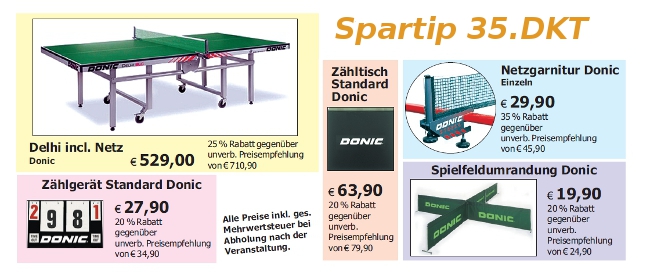 Und auch eine schöne Tradition hat der Abverkauf dieser Tische und der weiteren Spielmaterialien nach Veranstaltungsende, bei der sich Abspielrabatte erzielen lassen, die im Handel sonst nicht zu erzielen sind. Wir empfehlen deshalb einen Blick auf den Spartip zum 35.Drei-Königs-Turnier als pdf-Datei .