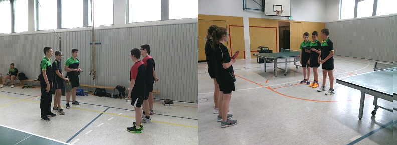 Mit einem satten 9:1 erledigen an den beiden Nebentischen die B-Schüler ihre Aufgabe souverän. Max Heisner, Moritz Heisner und Philipp Deichler traten an diesem Samstag auch nur als Dreier-Team an und mussten dabei nur ein Einzel abgeben. Die B-Schüler beenden die Saison auf dem 3.Platz der Bezirksliga.