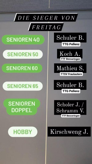 Der 1. Turniertag ist abgeschlossen. Hier die Ergebnisse, da bei der MKTT-Verlinkung in unserer Turnierrubrik leider die KO-Klassen nicht ordentlich abgebildet wurden.
