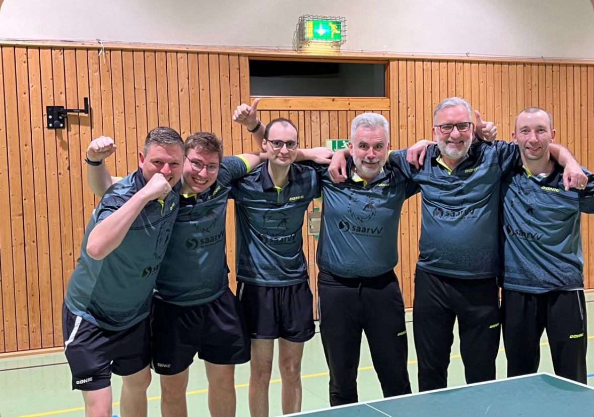 Jonah Sonntag, Daniel Kusnir, Benni Kühn, Siegmar Mathieu, Yannick Motz und Barry Taylor gewinnen knapp, aber völlig verdient vor den TTF Merzig die Meisterschaft in der Bezirksliga Gruppe D