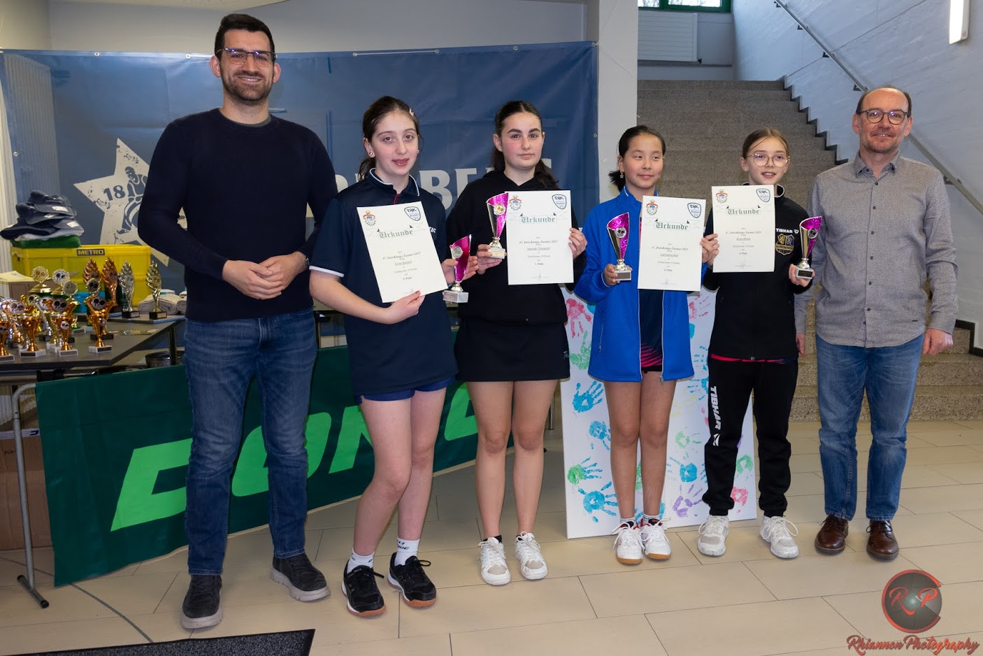 Während Hannah mit Carmelina deutlich besser zurechtkam als in der Gruppe mit Anna und klar ins Finale einzog, musste Erine sehr kämpfen, Anna konnte nach 1:2 Satzrückstand ausgleichen und im 5. Satz entschieden beim 11:9 nur Punkte Differenz zugunsten von Erine. Das Finale bestimmte Hannah und holte sich zwei klare Sätze, doch Erine kam immer besser ins Spiel, erarbeitete sich im dritten Satz gar zwei Satzbälle, für mehr Spannung im Turnier leider ungenutzt, so dass schlussendlich Hannah Theobald das Finale verdient mit 3:0 gewinnen konnte. Ein schöner und fairer Wettbewerb, bei dem Anna und Carmelina gute Dritte wurden und der Erine nach dem 3. Platz im letzten Jahr nun nochmal einen Platz weiter nach vorne bringt, führte Hannah zum Titel. Auf ein Neues im nächsten Jahr !