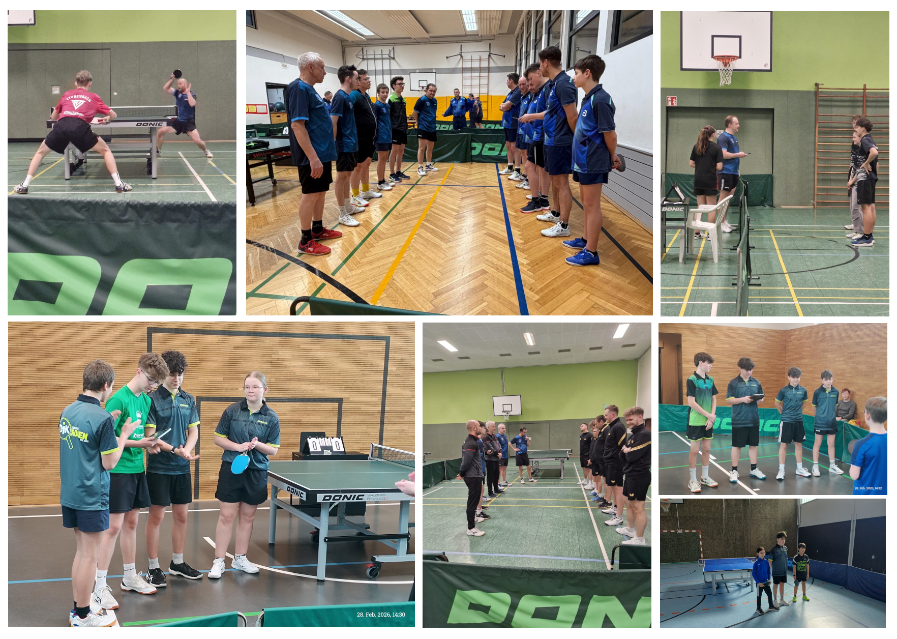 Saarlandliga: SG RB Westsaar - TTV Reisbach 8:8Bezirksliga: SG RB Westsaar II - TTF Besseringen II 9:5 Bezirksliga: TTC Ensdorf - SG RB Westsaar III 9:5 1. Bezirksklasse: TTSV Fraulautern II - SG RB Westsaar IV 9:0 Vierer-Team: SG RB Westsaar V - TTF Besseringen III 3:7 Bezirksklasse Senioren: TTC Wallerfangen II - DJK Roden 1:9 Saarlandliga: U19 - DJK Rastpfuhl 8:2 Landesliga: U15 - TuS Neunkirchen 10:0 Saarlandliga: TuS Bliesransbach - U13 7:3 Saarlandliga: SG RB Westsaar - TTV Reisbach 8:8 Krank, verletzt, Schicht, es war wahrlich kein leichter Spieltag für Sportkoordinator Jonah, den er an diesem Wochenende bewältigen musste. Das wir trotz vieler Ausfälle aufgrund großer Unterstützung doch mit allen Teams antreten konnten, dafür allen vielen Dank. Vielleicht war es auch diese Welle der Solidarität, die uns den nötigen Auftrieb gegen den Tabellendritten aus Reisbach gab, um uns hier einen hart erkämpften Punkt zu sichern. Insgesamt gingen sechs Spiele in den Entscheidungssatz, die alle knapp ausgingen, drei davon gingen jeweils an uns und an die spielstarken Gäste. Den ersten davon sicherten sich Timo und Siegmar, die uns damit nach den Doppeln knapp in Führung brachten. In der ersten Runde gewannen Boris, Timo und Matthias ihre Einzel, so dass wir knapp mit 5:4 vorne lagen. Danach brachten leider nur Stefan und wieder Matthias ihre Einzel durch, so dass wir mit Rückstand ins Schlussdoppel gingen, wo sich Jonah und Boris für die vorausgegangenen, knappen Niederlagen revanchieren vermochten und uns in einem heißen Match auf gutem Niveau mit 11:9 im Entscheidungssatz die Punkteteilung sicherten. Bezirksliga: SG RB Westsaar II - TTF Besseringen II 9:5 Natürlich litt auch die Zweitvertretung unter den Ausfällen. Kapitän Yannick, sonst im hinteren Paarkreuz, musste vorne aushelfen. Nach den Doppeln lagen wir knapp hinten, doch vorne hielten uns Martin und Yannick mit ausgeglichenen Ergebnissen stets im Spiel. Da in den Einzeln Daniel und Max je zweimal für uns punkteten und sich auch Nils und Fabio daran beteiligten, hatte alle unsere Spieler ihren Anteil an diesem tollen Sieg, Bezirksliga: TTC Ensdorf - SG RB Westsaar III 9:5 Die Dritte konnte das dann nicht mehr kompensieren. Dennoch hat sie sich teuer verkauft und hielt über weite Strecken mit. Durch eine Verletzung musste bei den Gästen Roman Wilhelm früh passen und dessen Spiele gingen an uns, Nachwuchsspieler Nero im Doppel mit Josef und in einem Einzel, das zweite verlor er nur knapp , erspielten sich unsere weiteren Punkte. 1. Bezirksklasse: TTSV Fraulautern II - SG RB Westsaar IV 9:0 Gegen den Tabellenführer war zwei Stammspielern nichts zu gewinnen. Michael koordinierte unser letztes Aufgebot bewundernswert, sympathisch mit guter Laune durch Pascal unterstützt. Jannis und Adi gaben ihren Einstand im Team, Ben und Thomas als Hobbyspieler schnupperten zum ersten Mal überhaupt Spielbetriebsluft. Vierer-Team: SG RB Westsaar V - TTF Besseringen III 3:7 Ersatzgeschwächt gingen wir in das Spiel gegen Besseringen. Vier der fünf anwesenden Spieler waren klar unter 18 Jahren, lediglich Kapitän Makar ragte heraus und half mit seiner besonnenen Art auch Kim zu ihrem Einzelerfolg und steuerte selbst zwei bei. Danke an Kim und Makar, stellvertretend für alle, die mitgeholfen haben, dass wir die zahlreichen Ausfälle halbwegs zu kompensieren vermochten. Es war wahrlich eine Energieleistung! Bezirksklasse Senioren: TTC Wallerfangen II - DJK Roden 1:9 Im Spitzenspiel des Spieltages gaben wir uns gegen den Tabellendritten keine Blöße. Ein Doppel zu Beginn ging verloren, das machte es etwas spannender. Sehr klare Siege danach mit dem Schlusspunkt von Kapitän Siegmar ließen zu keiner Zeit Zweifel aufkommen, wer dieses Spiel gewinnen würde. Saarlandliga: U19 - DJK Rastpfuhl 8:2 Gegen die DJK-Kameraden behaupteten wir uns erfolgreich. Wie knapp es zuging, verraten die Entscheidungssätze, alle vier konnten wir gewinnen und dadurch einen Sieg feiern, der sehr viel knapper war als es das Endergebnisse aufzeigt. Cheyenne aus einer Verletzung kommend, musste dieser noch Tribut zollen und verlor ihre beiden Einzel. Im Doppel mit Nero, der wie auch Jonas und Felix ungeschlagen blieb, trug sie dennoch ihren Teil zum Erfolg bei. Ein schöner, weil auch sehr enger Sieg, in einem Spiel, das über zwei Stunden ging und viele sehenswerte Ballwechsel hatte. Landesliga: U15 - TuS Neunkirchen 10:0 Die Schüler hatten in der gesamten Runde nur ein Spiel verloren, das Hinspiel in Neunkirchen, das dazu noch klar mit 8.2. Mit Spannung erwarteten wir das klare Spitzenspiel Erster gegen Dritter, bei einem Sieg hätten sich die Gäste mit einem Punkt an uns vorbei geschoben. Neunkirchen bot aber nur einen seiner Stammspieler auf, Damon und Giulio machten ihre ersten Spiele in der Runde. Wir gaben keinen Satz ab und sind noch immer vor dem letzten Spiel mit einem Punkt Vorsprung Spitzenreiter. Saarlandliga: TuS Bliesransbach - U13 7:3 Anna, Ben und Kapitän Max schlugen sich in Bliesransbach achtbar, gewannen jeweils eines ihrer drei Einzel, der Sieg ging auch in dieser Höhe verdient an den Gastgeber. Trotzdem sind die Verbesserungen in allen Bereichen unübersehbar.